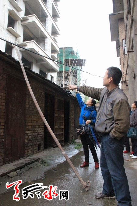 ????“10月16日下午,聽到樓下一聲悶響,向下一看居然有一根鋼管掉在了家屬院,而我家柴房也出現(xiàn)一個洞!”王先生告訴記者,家屬樓上許多聽到、看到鋼管掉落的人都跑下來看,大家都嚇得不輕,幸好當時沒有人進出院子,鋼管沒有傷到任何人。王先生還告訴記者,工地方在事發(fā)當天給他修補了屋頂,但沒想到修補得并不細致,最近因為下雨柴房里進了許多水,才想到了向媒體求助解決此事。