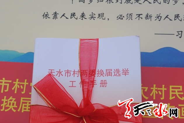 ????全市村兩委換屆選舉工作視頻會(huì)議召開后,縣鄉(xiāng)兩級(jí)迅速動(dòng)員部署,加強(qiáng)培訓(xùn)指導(dǎo),各項(xiàng)準(zhǔn)備工作正在全面開展。為了進(jìn)一步加強(qiáng)對(duì)換屆選舉工作的宣傳、營(yíng)造良好的社會(huì)氛圍,依法依規(guī)開展換屆選舉,市村兩委換屆選舉領(lǐng)導(dǎo)小組辦公室專門組織編印了2.2萬(wàn)冊(cè)《天水市村兩委換屆選舉工作手冊(cè)》和3000套系列宣傳畫,以圖文并茂、通俗易懂的形式,宣傳換屆選舉重要意義、基本原則、目標(biāo)任務(wù)、選舉程序、操作流程、紀(jì)律要求等,是指導(dǎo)幫助基層搞好村兩委換屆選舉工作的工具書和流程圖。