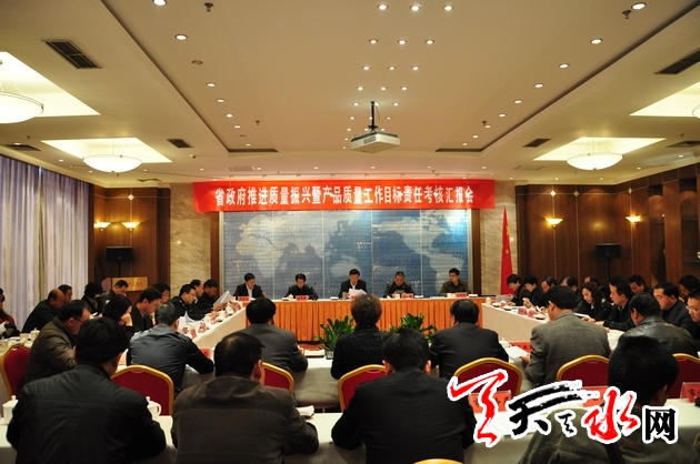 ????在考核匯報(bào)會(huì)和反饋會(huì)上,天水市政府向考核組匯報(bào)了全市推進(jìn)質(zhì)量振興和產(chǎn)品質(zhì)量工作目標(biāo)責(zé)任完成情況,考核組反饋了檢查考核情況。