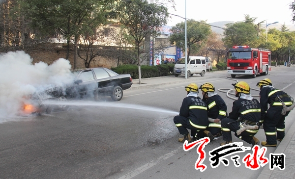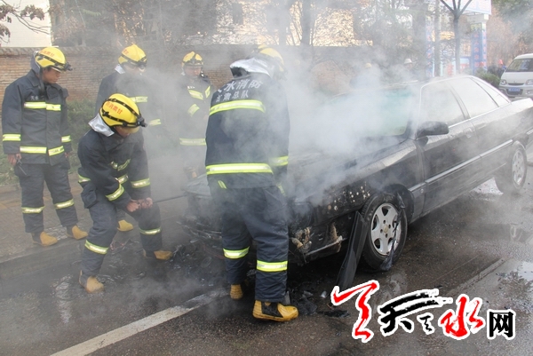 ??? 天天天水網(wǎng)訊【記者蔚軍平 通訊員任恒峰】11月6日16時(shí)40分許,在秦州區(qū)雙橋中路,天水市一輛紅旗牌轎車的前部突然起火,接到報(bào)警后,消防官兵迅速趕到現(xiàn)場(chǎng)將火撲滅,所幸火災(zāi)并未造成人員傷亡。