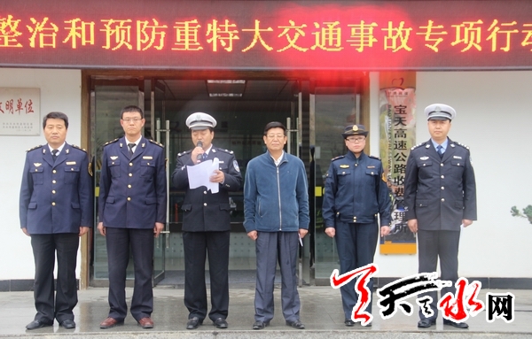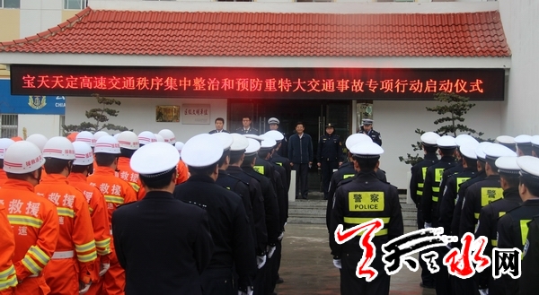 ????天天天水網(wǎng)訊(通訊員 王 峰)為深入貫徹省公安廳全省公安機關社會嚴打整治專項行動和公安部交管局今冬明春交通安全重點工作視頻會議工作部署要求,全面建設“平安甘肅”。11月11日,由高速公路第四支隊牽頭,高速公路路政、收費、養(yǎng)護、救援等相關部門共同參加寶天天定高速交通秩序集中整治和預防重特大交通事故專項行動啟動儀式,玉泉大隊作為高速公路第四支隊下屬大隊列席參加。