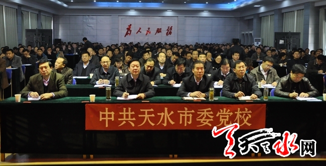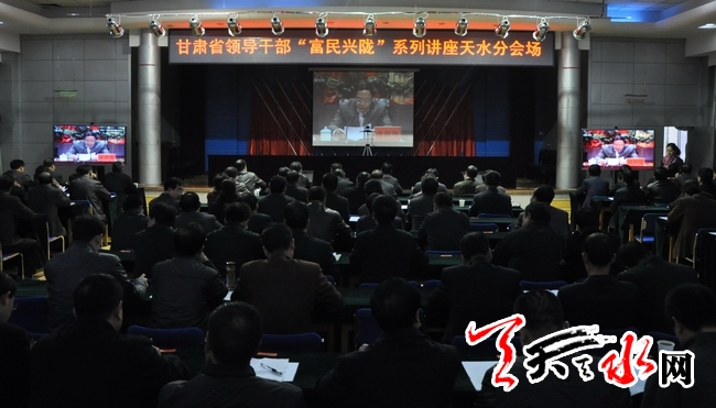 ????天水市人大常委會主任柴金祥,中共天水市委副書記、代市長楊維俊,中共天水市委常委、組織部長王光慶,中共天水市委常委、秘書長蔣曉強,中共天水市委常委、政法委書記趙衛(wèi)東等市四大組織領(lǐng)導,全市地級干部、縣級干部,市委黨校學員及全體教職工共計500余人在市委黨校分會場收聽收看了講座。