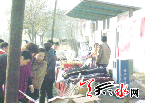 ????每到雙休日之時,秦州區(qū)藉河北路羲通花鳥市場靠北的一個站臺,便成了攤販的售貨臺。不僅使公交車無法進(jìn)站???,存在潛在的安全隱患,而且也嚴(yán)重影響了市容市貌。11月23日,許多市民致電本報(bào),對這種現(xiàn)象進(jìn)行了反映。