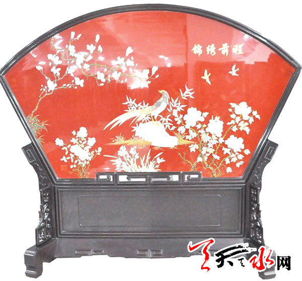 ????劉愛軍說,上世紀初,天水雕漆生產(chǎn)就已經(jīng)在民間存在,1916年天水開辦了第一個隴南工藝廠生產(chǎn)雕漆,請當?shù)貢嫿缑鲄⑴c,他們能書善畫,題詩落款,使產(chǎn)品大為創(chuàng)新,深得文人雅士的喜愛。1963年,天水市雕漆生產(chǎn)合作社成立。1958年7月,雕漆生產(chǎn)合作社過渡為國營天水市雕漆工藝廠,成為全國漆器行業(yè)的重點生產(chǎn)廠家。產(chǎn)品有麻榻、桌、箱柜、屏幾和旅游紀念品五大類、數(shù)百個花色品種,圖案除傳統(tǒng)人物、花鳥外,又研制成文物精品系列、石窟藝術(shù)系列等新產(chǎn)品。與此同時,還改進了嵌鈿工藝,有的屏風上嵌有數(shù)萬枚田瓜籽形的小螺鈿片,與象牙、玉石雕刻的人物、花鳥、文物博古交相輝映,珠光寶氣、富麗堂皇,形成一種強烈的地方特色。