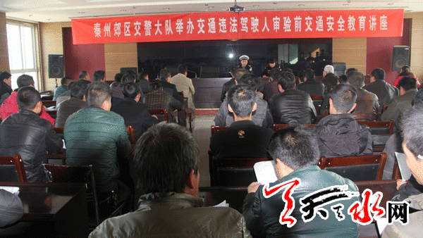 ????天天天水網(wǎng)訊(通訊員 孫彥明 郭瑞)2013年11月29日,秦州郊區(qū)交警大隊(duì)在大隊(duì)五樓會(huì)議室舉辦了交通違法駕駛?cè)藢忩?yàn)前交通安全教育講座。