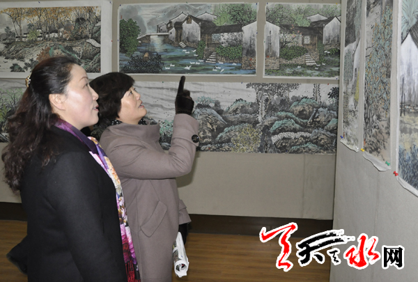??? 吳泉棠,57歲,浙江衢州人,重彩鄉(xiāng)情山水畫創(chuàng)始人,擅長山水花鳥,是中國美術(shù)家協(xié)會會員,國家一級美術(shù)師,現(xiàn)任北京民族大學(xué)教授,碩士生導(dǎo)師,2012年被評為當(dāng)代最具學(xué)術(shù)價(jià)值和市場潛力的山水畫家三十家。當(dāng)天,中共天水市委常委、宣傳部長彭鴻嘉,天水市政協(xié)副主席白曉玲參觀了書畫展。