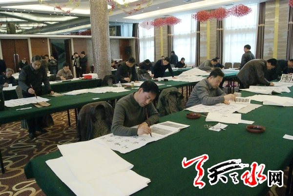 ??? 中國(guó)書(shū)法家協(xié)會(huì)考級(jí)中心是經(jīng)過(guò)國(guó)家發(fā)改委和文化部于2012年3月正式批準(zhǔn)、授權(quán)設(shè)立的專業(yè)考級(jí)機(jī)構(gòu);天水考級(jí)基地將負(fù)責(zé)天水范圍的工作站設(shè)立及考級(jí)事宜。揭牌當(dāng)天,來(lái)自秦州區(qū)的22名書(shū)法愛(ài)好者在該基地進(jìn)行了揭牌后的第一次業(yè)余學(xué)員考試。記者常亮 攝