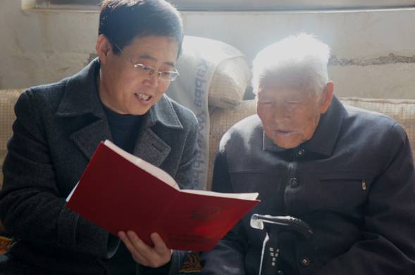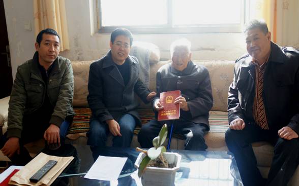 ????12月16日,市房地產(chǎn)管理局副局長兼市房產(chǎn)交易中心主任趙振林、副主任楊志海一行5人,來到麥積區(qū)馬跑泉路22號(hào),96歲高齡的老紅軍霍永貞家中上門服務(wù),為老人頒發(fā)房產(chǎn)證,細(xì)致體貼的服務(wù),讓老人感動(dòng)不已。