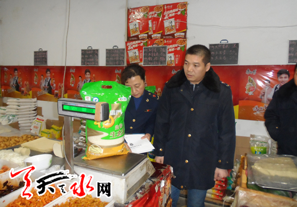 ????天天天水網(wǎng)訊(通訊員 董建強(qiáng) 宋秀梅)“兩節(jié)”臨近,天水市工商局麥積分局加強(qiáng)節(jié)日市場(chǎng)監(jiān)管,嚴(yán)厲打擊借節(jié)日之機(jī)經(jīng)銷假冒偽劣商品和侵害消費(fèi)者合法權(quán)益的行為,確保市場(chǎng)秩序穩(wěn)定。該局道北工商所根據(jù)轄區(qū)實(shí)際,以各大超市,北山路市場(chǎng)、城鄉(xiāng)結(jié)合部為重點(diǎn),加大對(duì)御寒商品、保暖用品、糧油副食品,以及高危商品的監(jiān)管力度,認(rèn)真排查無照經(jīng)營、缺斤少兩、虛假廣告、違法促銷等行為,有效規(guī)范市場(chǎng)秩序,營造和諧、文明、有序的市場(chǎng)環(huán)境。
