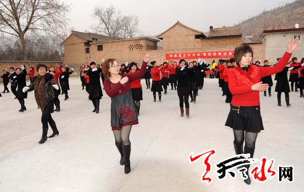 ??? 天天天水網(wǎng)訊?元旦期間,麥積區(qū)社棠鎮(zhèn)俊林、綿諸和社棠村100多名農(nóng)村婦女穿上節(jié)日的盛裝,載歌載舞,以農(nóng)村婦女特有的方式喜迎新年,進(jìn)一步推動(dòng)了文明和諧的社會(huì)主義新農(nóng)村建設(shè)步伐。(竇耀輝)
