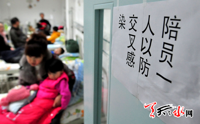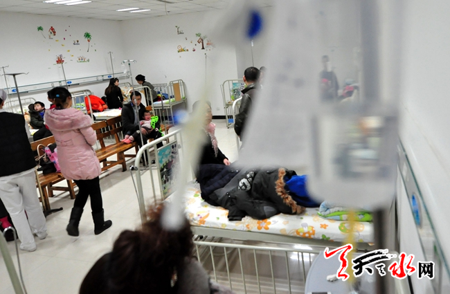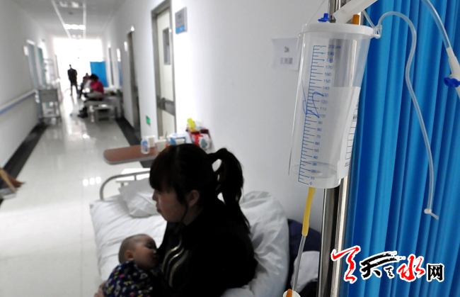 ????“昨天上午來這里看病患者就有300多人,快中午一點(diǎn)了,我們四個(gè)醫(yī)生連續(xù)工作,還剩下60多位患者等待就醫(yī)”。記者1月7日上午在天水市第一人民醫(yī)院采訪時(shí)兒科主任醫(yī)師頡立文說,去年入冬以來,由于天水降雪少,空氣中漂浮的病菌等雜質(zhì)活躍,因幼兒免疫力弱,對病毒性細(xì)菌的抵抗力差,致5歲左右的幼兒呼吸道系統(tǒng)頻發(fā)感染,目前住院治療的就有100多位患者。記者在市第一人民醫(yī)院門診大樓兒科采訪時(shí)見到,家長懷抱患兒不時(shí)進(jìn)出在治療室,過道上臨時(shí)搭設(shè)的住院就診床位隨處可見,患兒就醫(yī)時(shí)的哭叫聲等嘈雜聲闐溢于整個(gè)樓道。頡立文醫(yī)師說,目前因患有呼吸道感染的患兒較多,其它醫(yī)院的就醫(yī)能力又有限。面對這種情況,作為全市最大的醫(yī)療機(jī)構(gòu),有責(zé)任讓來此就醫(yī)的患者得到及時(shí)治療,所以目前在樓道上安放了臨時(shí)住院床位,以滿足居住較遠(yuǎn)的患者治療方便。