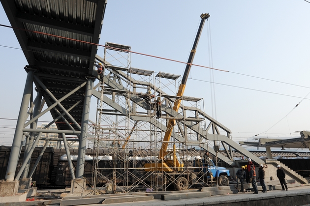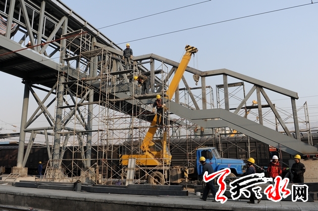 1月14日,天水火車站跨線天橋建設(shè)現(xiàn)場正在加緊施工。為更好地方便旅客乘車,避免旅客進出站人員對流,天水火車站于去年10月開工建設(shè)全封閉鋼架結(jié)構(gòu)、橫跨鏈接三個站臺的單側(cè)下行跨線人行天橋。天橋投入使用后,將有效緩解高峰期旅客乘降組織壓力。 記者 周文濤 孫鎮(zhèn) 攝