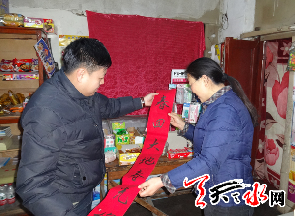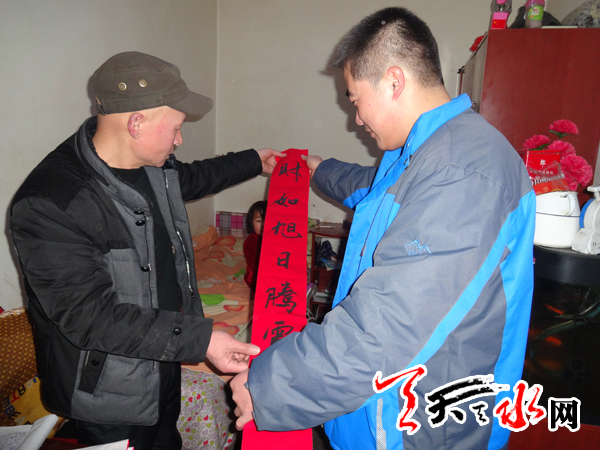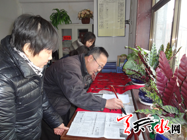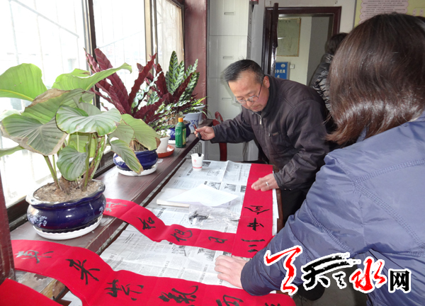 ????天天天水網訊【記者蔚軍平】1月20日,秦州區(qū)東關街道辦仁和里社區(qū)組織轄區(qū)擅長書法的黨員,為居民義務書寫春聯(lián)。社區(qū)工作人員上門將這些對聯(lián)送到轄區(qū)部分居民家中,向他們致以新春的問候和祝福。