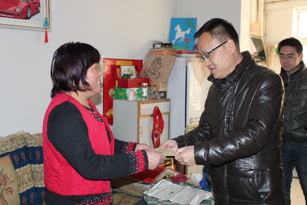 ????天天天水網(wǎng)訊?(通訊員呂虹)春節(jié)來臨之際,為了讓雙聯(lián)困難戶度過一個祥和、快樂的節(jié)日,同時也更進一步推進區(qū)人社局雙聯(lián)幫扶行動的深入開展。2014年1月21日,秦州區(qū)人社局局長劉睿智、黨委書記段立建及工作人員一行5人來到聚寶盆社區(qū),走訪慰問社區(qū)困難戶。此次共走訪慰問2戶,為每戶送去了慰問金500元,同時也為他們帶去了黨和政府的親切關(guān)懷以及節(jié)日的美好祝福。