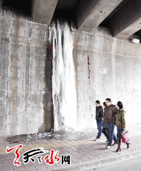????記者采訪了秦州區(qū)七里墩街道辦七里墩社區(qū),社區(qū)工作人員介紹說,春節(jié)前夕,由于居民反映,社區(qū)派人對涵洞內(nèi)的冰柱清理過一次,可春節(jié)過后由于降溫,該處又形成了冰柱。對于冰柱,社區(qū)可隨時派人清理,但要從根本上解決問題,還需要有關(guān)部門修理排洪渠解決其滲漏問題。