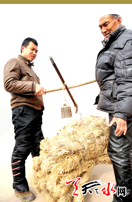 ????2月25日,在清水縣白沙鄉(xiāng)農(nóng)貿(mào)市場(chǎng)上,清水縣秦亭長(zhǎng)海秦天漢麻種植專業(yè)合作社的雷會(huì)長(zhǎng)忙碌收購(gòu)大麻。