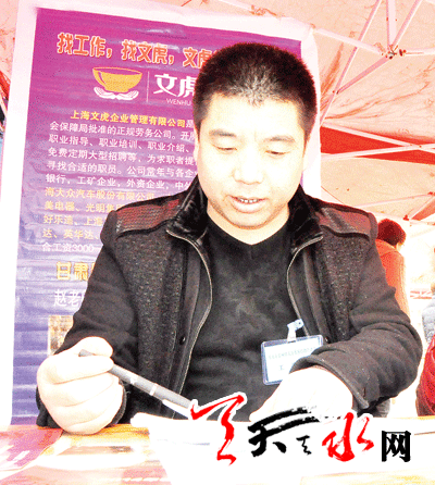 ????“這幾家大型企業(yè)的待遇和發(fā)展實(shí)力確實(shí)不錯(cuò),我常年就在上海,可以保證給咱們老鄉(xiāng)找個(gè)可靠的單位,你們不用擔(dān)心工資和住宿的問題。而且我今年要在咱們天水開個(gè)公司,專門招用不能出遠(yuǎn)門的人打工。”2月22日,記者在市龍城廣場舉行的秦州區(qū)2014春季大型人力資源招聘洽談會(huì)上看到,在掛著上海企業(yè)招工簡歷的幾個(gè)攤位上,一位天水口音的男士被求職者團(tuán)團(tuán)圍住,詳細(xì)介紹著招工情況。