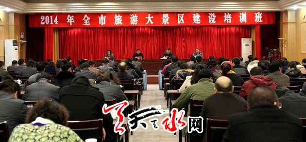 ??? 天天天水網(wǎng)訊【記者 童強】 2月28日,為認真貫徹落實《絲綢之路經(jīng)濟帶甘肅段旅游大景區(qū)建設(shè)綱要》,全面加快天水市旅游大景區(qū)建設(shè)步伐,市旅游局舉辦了2014年全市旅游大景區(qū)建設(shè)培訓(xùn)班。天水市副市長張建杰出席了開班儀式。市、縣區(qū)旅游局負責(zé)人及全市各A級旅游景區(qū)負責(zé)人等130余人參加了本次培訓(xùn)。