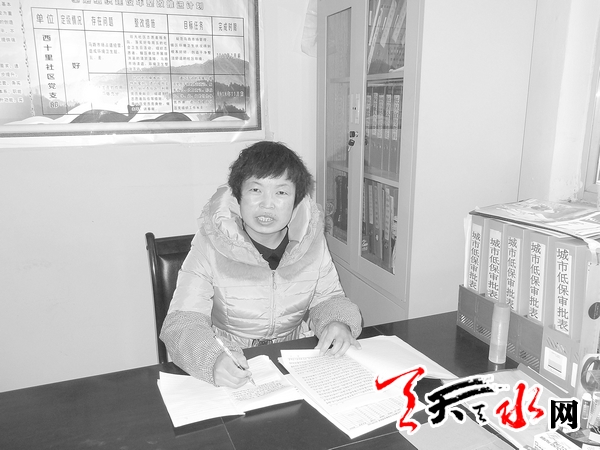 ??? 在秦州區(qū)天水郡街道辦西十里社區(qū),有這樣一位社區(qū)工作者,她性格開朗,樂于助人,風趣健談。大家有什么事情都愛和她說,有什么事情都喜歡找她幫忙。而她對于大家也總是有求必應,將居民的事情當做自己的事來辦,她就是西十里社區(qū)干部張勤。