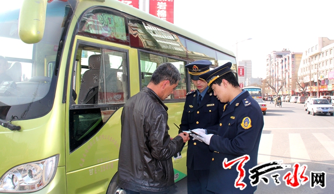 ????天天天水網(wǎng)訊(記者 何永德 通訊員 魏蕾蕾)為全面貫徹落實(shí)市委市政府關(guān)于建設(shè)宜居、宜業(yè)、宜游城市和現(xiàn)代化中心城區(qū)的要求,深入推進(jìn)“三城聯(lián)創(chuàng)”活動(dòng)。麥積運(yùn)管分局近期大力推進(jìn)轄區(qū)道路運(yùn)輸市場綜合治理力度,著力解決麥積轄區(qū)道路運(yùn)輸車輛不文明經(jīng)營等突出問題。