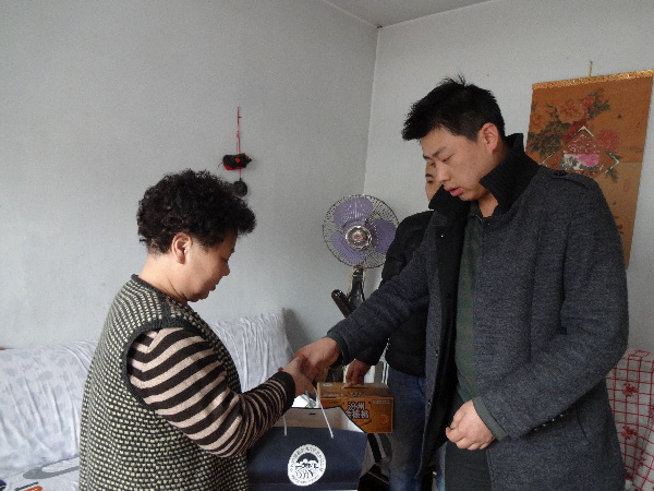 ????社區(qū)干部帶著牛奶、水果來到失獨家庭戶家中,與他們進行了促膝交談,詳細了解他們近期的身體和生活情況,聽取他們的心聲,鼓勵他們堅強面對生活的不幸,學會向前看,重拾生活的信心和勇氣。