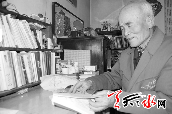 ????井俊龍老人平時(shí)關(guān)心政治、喜歡看書看報(bào),在他工作期間直到退休,他一直堅(jiān)持著寫作這一愛(ài)好,他寫的消息、散文等130多篇作品曾在《天水日?qǐng)?bào)》、《天水晚報(bào)》、《火紅年華》以及《老年體育報(bào)》等刊物上刊發(fā)。記者在他家中看到,老人不大的房子里,就有三個(gè)書架,上面均整整齊齊地摞滿了各種書籍。閑暇之余,老人便在家里聽新聞、看書、寫作。
