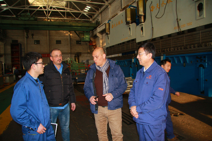 ????在兩天的業(yè)務(wù)洽談、產(chǎn)品研發(fā)和技術(shù)交流過程中,公司黨委書記、董事長吳輝親自接見了歐洲客人,并全程參與了細(xì)節(jié)談判,同時(shí)陪同兩位歐洲客人深入一分廠、二分廠、三分廠、四分廠、五分廠、數(shù)按分廠、綜合庫等生產(chǎn)一線和技術(shù)中心、銷售處對公司進(jìn)行了整體參觀和了解,通過仔細(xì)參觀并與公司吳董事長和經(jīng)銷處相關(guān)業(yè)務(wù)人員進(jìn)行交流,他們被天水鍛壓的企業(yè)文化、技術(shù)優(yōu)勢、生產(chǎn)實(shí)力、經(jīng)營理念所吸引,天水鍛壓的發(fā)展引起了他們極大的興趣,尤其是剛剛露面在展會上的QE11K-12/3200剪板機(jī)成為他關(guān)注的重點(diǎn),因?yàn)樵摍C(jī)整機(jī)設(shè)計(jì)符合歐洲CE和其安全防護(hù)要求,更加適合進(jìn)入歐洲市場,參觀過程中,兩位客商還非常認(rèn)真的交流、探討,并就機(jī)床研發(fā)和生產(chǎn)提出了一些改進(jìn)意見,促使天水鍛壓的設(shè)計(jì)更加完美化。