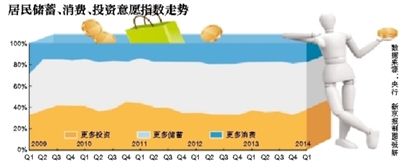 ????央行調(diào)查顯示,一季度居民儲(chǔ)蓄和消費(fèi)的意愿降低了,而投資的占比增加。其中,傾向于“更多投資”的居民占38.2%,較上季增加4.8個(gè)百分點(diǎn)。