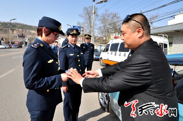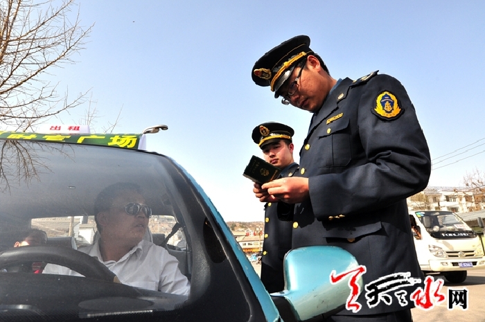 ???? 3月25日,記者在秦州區(qū)雙橋中路段和秦州西客站跟隨天水市運(yùn)管局稽查大隊(duì)對(duì)過往的出租車和公交車進(jìn)行突擊檢查。對(duì)車內(nèi)衛(wèi)生和營運(yùn)人員的著裝及相關(guān)證件等進(jìn)行了嚴(yán)格檢查,并對(duì)不符合要求的個(gè)別車主進(jìn)行了教育勸導(dǎo),責(zé)成其所在出租車公司限期整改。
