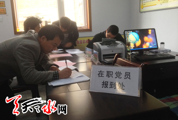 ????天天天水網(wǎng)訊(記者 周文濤?孫鎮(zhèn))4月9日,在職黨員正在秦州區(qū)東關(guān)街道忠武巷社區(qū)報到登記。為深入推進(jìn)黨的群眾路線教育實踐活動,加強(qiáng)基層服務(wù)型黨組織建設(shè),建立健全黨員干部直接聯(lián)系服務(wù)群眾長效機(jī)制,該社區(qū)緊密安排、積極開展在職黨員到社區(qū)報到工作,為下一步著力構(gòu)建黨員“工作在單位、服務(wù)在社區(qū)、奉獻(xiàn)雙崗位”的良性機(jī)制,真正讓黨員在“零距離”接觸群眾中受教育,讓群眾在“點點滴滴”中看到黨員作為和開展志愿服務(wù)群眾活動打下了基礎(chǔ)。