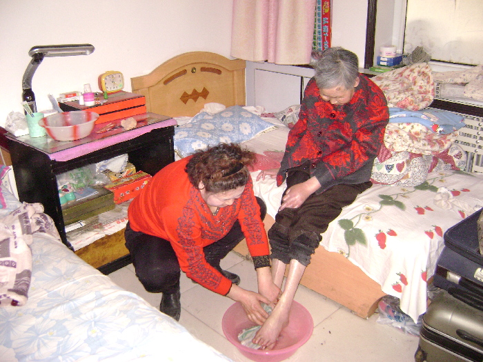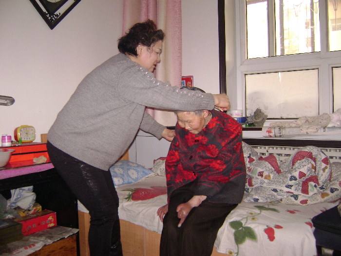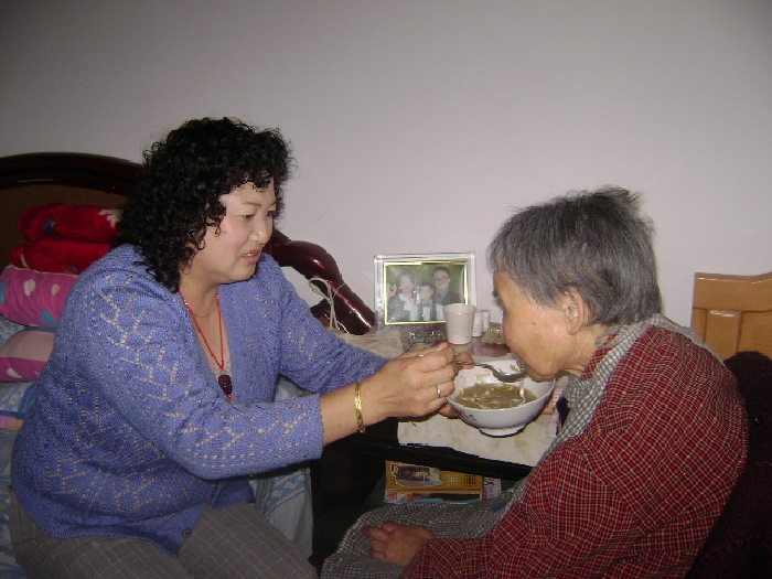 ????當(dāng)她在家全天伺候婆婆時(shí),才感到比上班還要苦、還要累。每天早上天剛亮,她就得起床,幫婆婆穿衣穿鞋,伺候婆婆大小便、擦屁股,給婆婆洗臉?biāo)⒀溃灰蝗杖?,都給婆婆做可口、有營(yíng)養(yǎng)、容易消化的飯菜,并且一口一口喂著吃,飯后還要操心喂藥;每天晚上,她按時(shí)給婆婆擦臉洗腳,伺候小便,服侍休息。婆婆經(jīng)常大小便失禁,弄得衣褲和床上污穢不堪,但她從未嫌棄和埋怨,總是及時(shí)清洗處理。為防止婆婆得褥瘡,她總是幫婆婆翻身、擦澡,給婆婆三天一小洗、一周一大洗,多年來(lái)婆婆從沒(méi)有生過(guò)褥瘡。