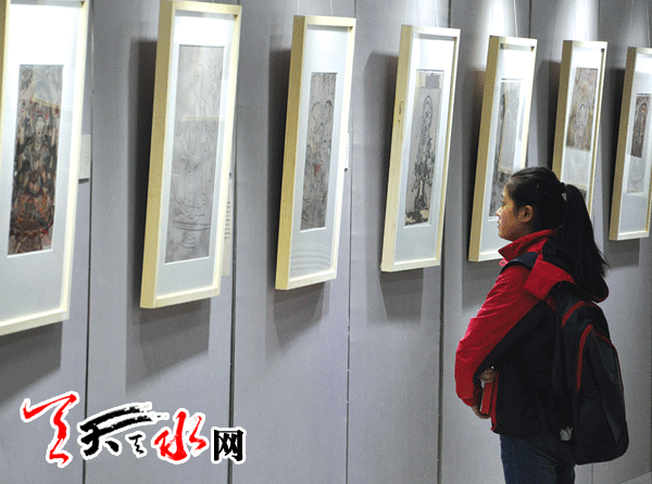 ??? 天天天水網(wǎng)訊【記者 成雄】4月11日至20日,敦煌藏經(jīng)洞流失海外珍品復(fù)制展在天水師院藝術(shù)館舉辦,此次展覽由天水師院美術(shù)學(xué)院、天水師院藝術(shù)館、深圳淳實文化傳播有限公司主辦,此次共展出100幅復(fù)制作品。