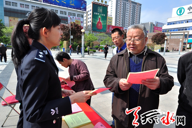 ????天天天水網(wǎng)訊 (記者 何永德)4月23日上午,天水市公安局和秦州公安分局在龍城廣場(chǎng)開展戶口登記管理專項(xiàng)清理整頓宣傳活動(dòng),為嚴(yán)密戶口登記管理,徹實(shí)解決糾正戶口管理中存在的漏洞和問題,全面強(qiáng)化監(jiān)管管理機(jī)制,更好地服務(wù)人民群眾,天水市公安局將從2014年3月至2016年12月在全市范圍內(nèi)組織開展戶口登記管理專項(xiàng)清理整頓工作。