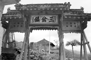 ????牌坊,木制而成。這讓看慣了石頭、水泥牌坊的人們很是驚喜。牌坊并不高大,似乎伸伸手就能夠到似的。正面的匾額是“三岔鎮(zhèn)”,背后是“和風(fēng)甘雨”,左右的小匾則是對聯(lián)。這是公元1790年,秦州州判司燖建三岔鎮(zhèn)牌坊,至今牌坊上還能看到他寫的字。