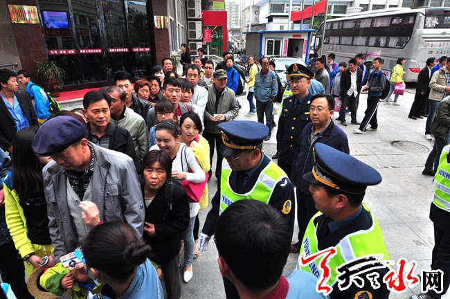 天天天水網(wǎng)訊;(記者何永德)為給“五一”期間天水旅游市場(chǎng)創(chuàng)造一個(gè)祥和安全規(guī)范的營(yíng)運(yùn)環(huán)境,天水市運(yùn)管局稽查大隊(duì)會(huì)同秦州、麥積分局組成的稽查組三天來(lái),全力以赴奮戰(zhàn)在道路營(yíng)運(yùn)一線(xiàn),5月3日上午,以該局局長(zhǎng)張憲泉帶隊(duì)的稽查組又一次對(duì)麥積區(qū)火車(chē)站及景區(qū)營(yíng)運(yùn)市場(chǎng)進(jìn)行突擊檢查。