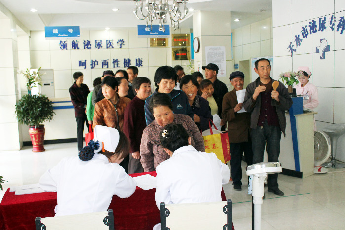 ????天天天水網(wǎng)訊 連日來(lái),秦州區(qū)環(huán)衛(wèi)處組織環(huán)衛(wèi)工人在天水市泌尿?qū)?漆t(yī)院進(jìn)行免費(fèi)體檢。此次體檢活動(dòng)從5月8日開(kāi)始,天水市泌尿?qū)?漆t(yī)院將分批對(duì)環(huán)衛(wèi)處1100名環(huán)衛(wèi)工人進(jìn)行免費(fèi)體檢,整個(gè)活動(dòng)將于5月28日結(jié)束。