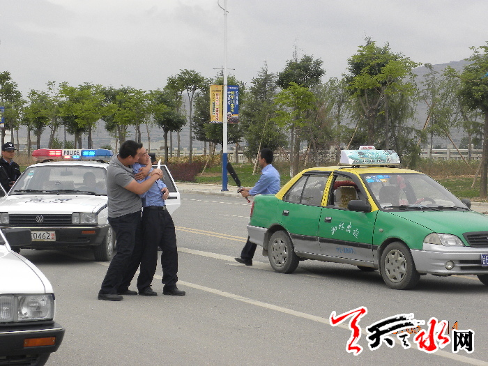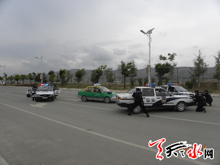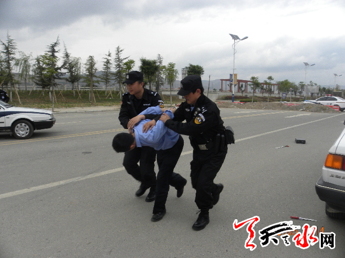 ??? 天天天水網(wǎng)訊(通訊員雒婧奇?謝軻)5月23日,在甘谷縣公安局黨委的統(tǒng)一安排下,由反恐防暴大隊(duì)牽頭,在甘谷縣濱河西路開展了模擬解救被劫持出租車司機(jī)的防暴應(yīng)急演練。共有14名民警參與了演練。