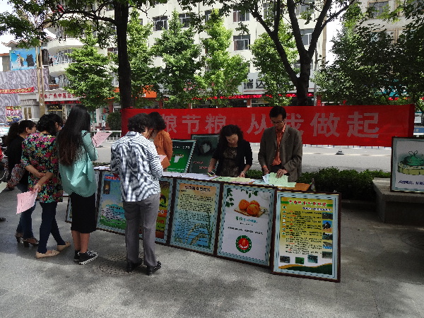 活動以愛惜糧食,科學(xué)消費為指導(dǎo),結(jié)合2014糧食科技活動周一契機,立足進步巷社區(qū)實際,通過在轄區(qū)主要街道懸掛愛糧節(jié)糧橫幅,發(fā)放愛糧節(jié)糧宣傳單等方式,宣傳愛糧節(jié)糧,維護全民營養(yǎng)健康等方面的知識。