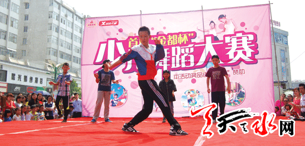 ????“金都杯”少兒舞蹈大賽的第一個(gè)參賽節(jié)目是舞蹈《靜夜思》。參賽的兩位小朋友身著古典服裝,手拿扇子翩翩起舞,隨著音樂時(shí)而望月時(shí)而靜思。在比賽中,傳統(tǒng)舞蹈和現(xiàn)代舞蹈交替登臺(tái)亮相,孩子們跳舞時(shí)認(rèn)真的態(tài)度和著裝的成人化不時(shí)引發(fā)圍觀群眾的喝彩和會(huì)心的笑聲。