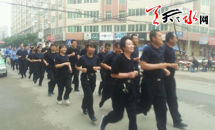 天天天水網(wǎng)訊(通訊員雒婧奇)6月4日上午,在甘谷縣政府黨組成員、局黨委書(shū)記、局長(zhǎng)、督察長(zhǎng)李世和的親自帶領(lǐng)下,甘谷縣公安局機(jī)關(guān)民警、文職干部共51人進(jìn)行了晨跑訓(xùn)練。