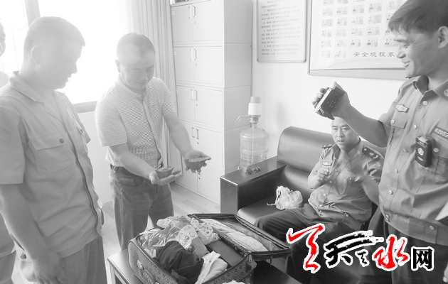 ????當眾人來到俊馳公司后,劉先生的親戚、俊馳公司以及麥積運管分局的工作人員打開了手提箱,看到箱內(nèi)有銀錠一個、銀碗一套,錢包、銀行卡等貴重物品。查看的同時和劉先生通過電話進行核對,經(jīng)查箱內(nèi)物品無一缺失。9時許,劉先生的親戚領(lǐng)走了手提箱。