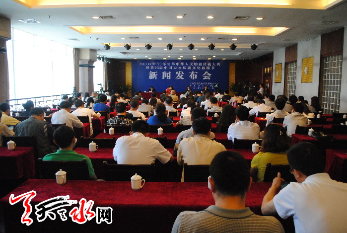 ????天天天水網(wǎng)訊(記者王曉馨 見習(xí)記者黃虹)6月21日下午,省政府新聞辦公室和市政府在天辰大酒店舉行了2014(甲午)年公祭中華人文始祖伏羲大典暨第25屆中國(guó)?天水伏羲文化旅游節(jié)新聞發(fā)布會(huì)。市委常委、宣傳部長(zhǎng)彭鴻嘉出席發(fā)布會(huì)并介紹了公祭伏羲大典及節(jié)會(huì)有關(guān)情況。?????