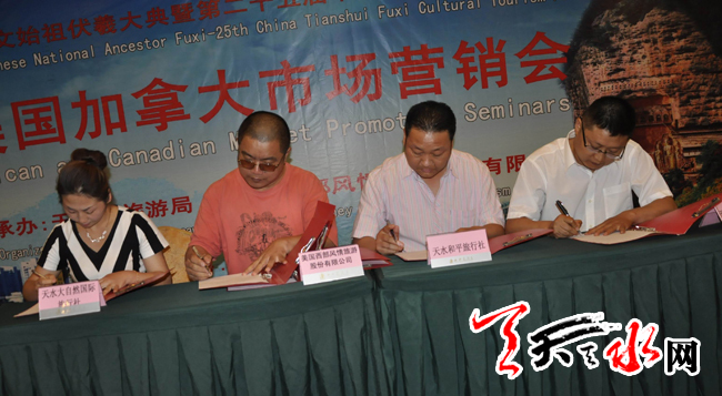 ??? 天天天水網訊【記者 趙曉玲】 6月21日下午,由市政府主辦,市旅游局、美國西部風情旅行社有限公司承辦的2014年第二十五屆中國·天水伏羲文化旅游節(jié)天水旅游美國、加拿大市場營銷會在麥積區(qū)舉行。