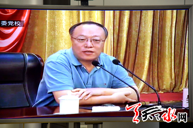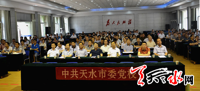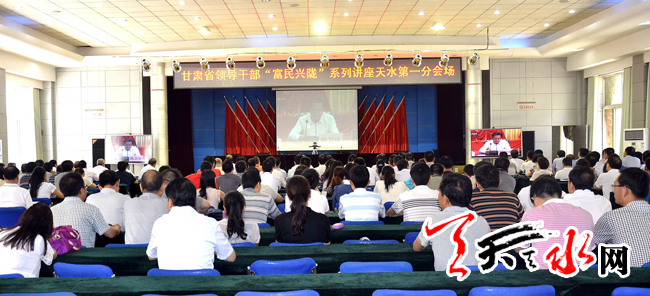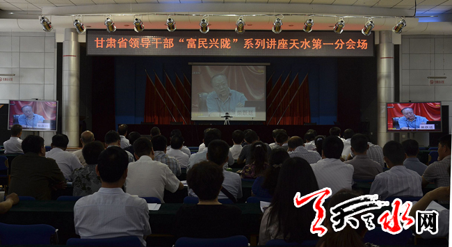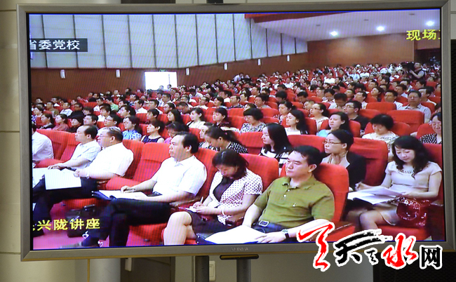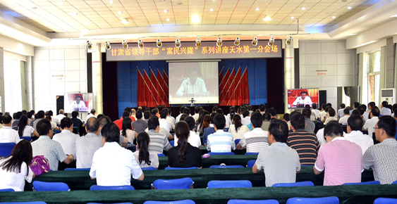 ????市政協(xié)副主席馬百齡和全市副縣級以上領導干部在天水分會場收聽收看講座。