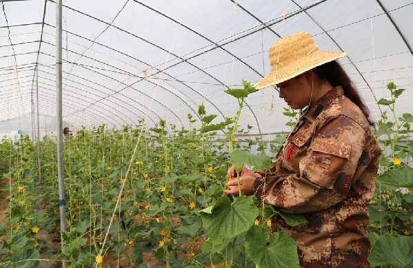 ????在另一邊的蔬菜大棚里,技術(shù)人員正在精心為航育黃瓜一號人工授粉。目前,天科菜籃子基地已引進6個蔬菜新品種,在基地雜交育種,選育優(yōu)良品種在全縣示范推廣?!斑@是我們農(nóng)科所選育出來的航育黃瓜一號,現(xiàn)在我們在這里制種,雜交制種成功以后,就像全國各地推廣。”天科農(nóng)業(yè)技術(shù)顧問王福全告訴記者。