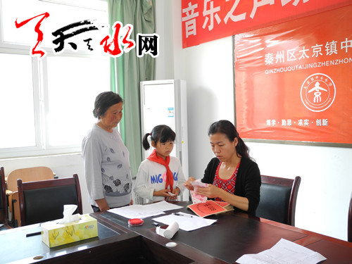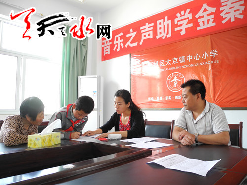 ????天天天水網(wǎng)訊 6月26日上午,秦州區(qū)婦聯(lián)干部一行兩人到太京中心小學(xué)為14名貧困留守兒童發(fā)放音樂(lè)之聲助學(xué)金。