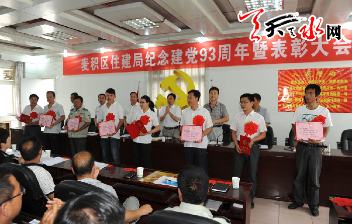 ????天天天水網(wǎng)訊(通訊員竇耀輝)為紀(jì)念建黨93周年華誕,深切緬懷黨的光輝歷史,歌頌黨的豐功偉績(jī),6月30日,麥積區(qū)住建局召開(kāi)紀(jì)念建黨93周年暨表彰大會(huì)。安排部署黨建及當(dāng)前重點(diǎn)工作,并對(duì)3個(gè)先進(jìn)黨支部、8名優(yōu)秀黨務(wù)工作者和24名優(yōu)秀共產(chǎn)黨員進(jìn)行了表彰獎(jiǎng)勵(lì),納新黨員和轉(zhuǎn)正黨員面對(duì)鮮紅的黨旗進(jìn)行了莊嚴(yán)的入黨宣誓,進(jìn)一步激發(fā)了建設(shè)系統(tǒng)廣大黨員干部職工全身心投入到城市建設(shè)各項(xiàng)工作的熱情。