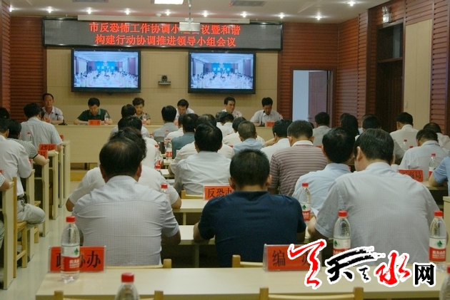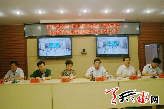 ??? 天天天水網(wǎng)訊【記者 何慧娟】7月2日,天水市召開全市反恐怖工作協(xié)調(diào)小組會議暨和諧構(gòu)建行動協(xié)調(diào)推進(jìn)領(lǐng)導(dǎo)小組會議,會議貫徹落實了省反恐工作領(lǐng)導(dǎo)小組第一次會議暨和諧構(gòu)建行動協(xié)調(diào)推進(jìn)領(lǐng)導(dǎo)小組會議精神,分析了當(dāng)前全市反恐工作面臨的形勢,進(jìn)一步安排部署了當(dāng)前各項重點工作。市委常委、政法委書記趙衛(wèi)東出席會議。