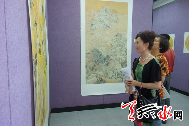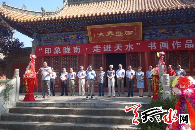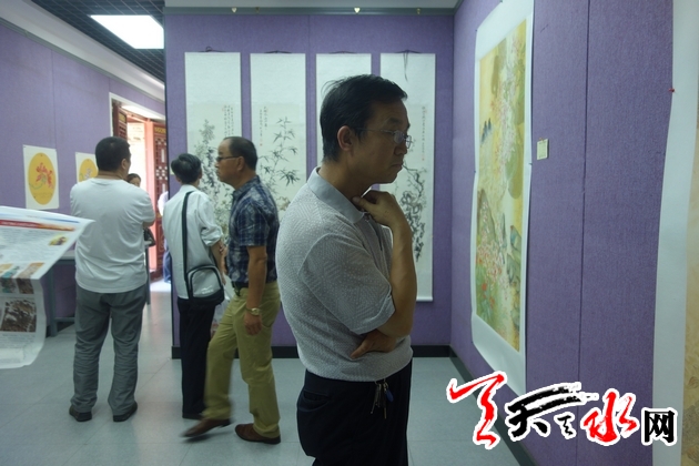 ??? 天天天水網(wǎng)訊(記者 王紅梅)7月2日上午10時(shí)30分,在歡快的音樂聲中,《印象隴南 走進(jìn)天水》在我市書畫院開展。此次畫展由隴南市文學(xué)藝術(shù)界聯(lián)合會、天水市文學(xué)藝術(shù)界聯(lián)合會共同主辦,隴南市美術(shù)家協(xié)會、隴南市書法家協(xié)會、天水市美術(shù)家協(xié)會、天水書畫院共同承辦,共展出隴南籍書畫名家崔鴻文、王旭升、蒙朝暉、翟友江、張永彩、楊文玉、王建國等7人書畫作品100余幅。