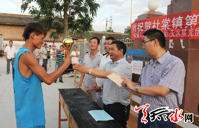 ????天天天水網(wǎng)訊(通訊員竇耀輝)近日,麥積區(qū)社棠鎮(zhèn)舉行首屆全民運(yùn)動(dòng)會(huì),來(lái)自鎮(zhèn)機(jī)關(guān)、各行政村、駐鎮(zhèn)企業(yè)和學(xué)校的10支代表隊(duì)近500多名男女運(yùn)動(dòng)員,通過(guò)籃球、乒乓球、羽毛球和象棋4個(gè)項(xiàng)目的比賽,充分展示了社棠人民的體育競(jìng)技風(fēng)采和勇于拼搏、健康向上的精神風(fēng)貌。來(lái)自該鎮(zhèn)社棠鎮(zhèn)綿諸村星月健身舞蹈隊(duì)跳起歡快的舞蹈為運(yùn)動(dòng)會(huì)的成功舉辦助興。